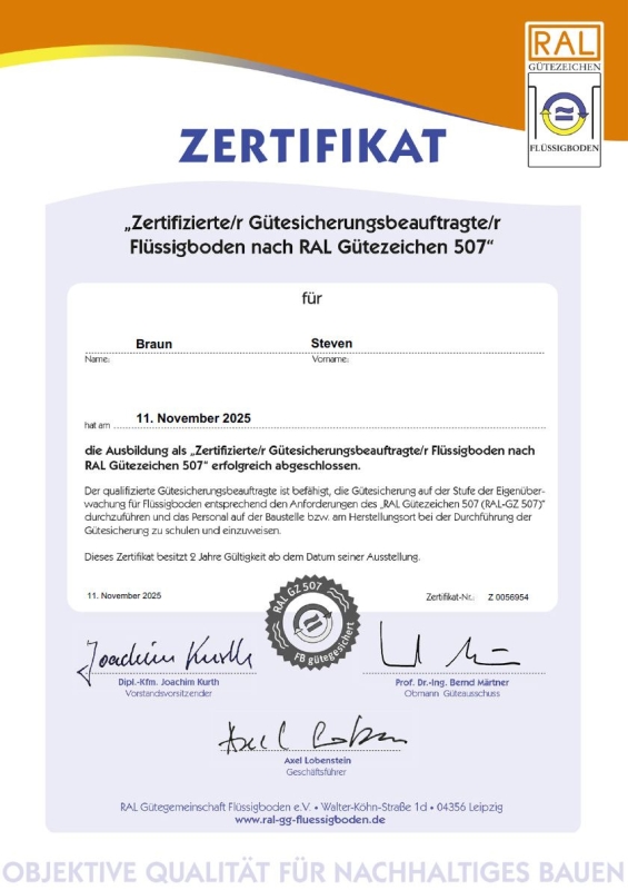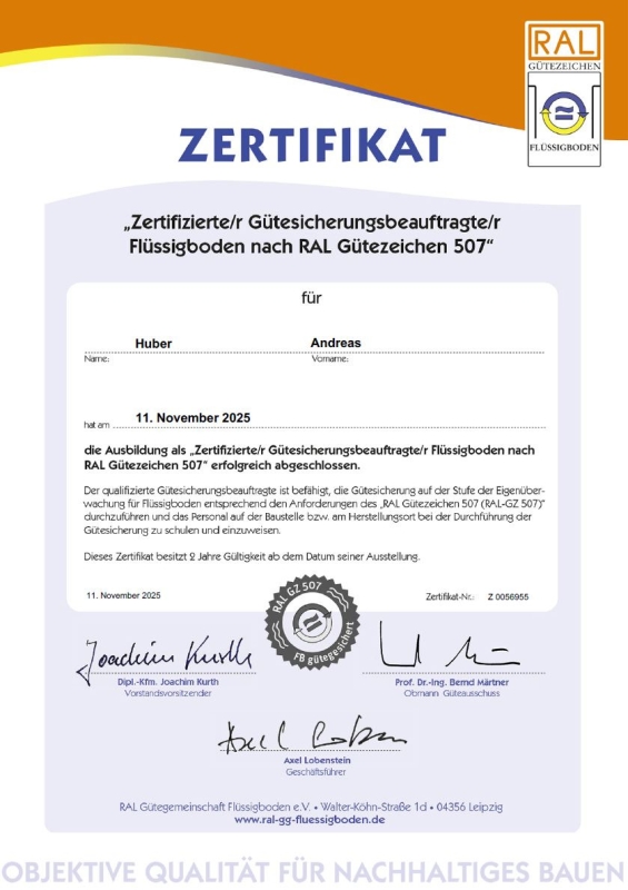 „Zertifizierter Gütesicherungsbeauftragter Flüssigboden nach RAL-Gütesicherung 507“.